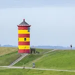 Krummhörn városában, 25 perc sétára a Pilsumi világítótorony területétől helyezkedik el az Auszeithaus Pilsum Mit Grossem Wintergarten - 8 Personen, mely egy konyhával felszerelt ingatlant kínál. Ez az 5 hálószobás villa TV műholdas csatornákat, kávé/teafőzőt és étkezőt tartalmaz a szobákban.
